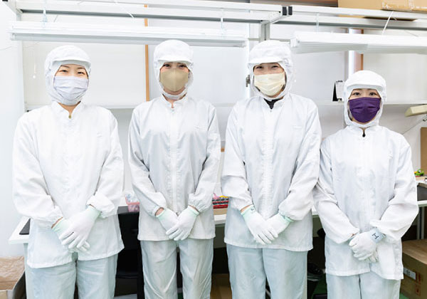 社内従業員は全員、クリーンウエアを着用。ホコリや髪の毛などが入らないように細心の注意をはらいます。